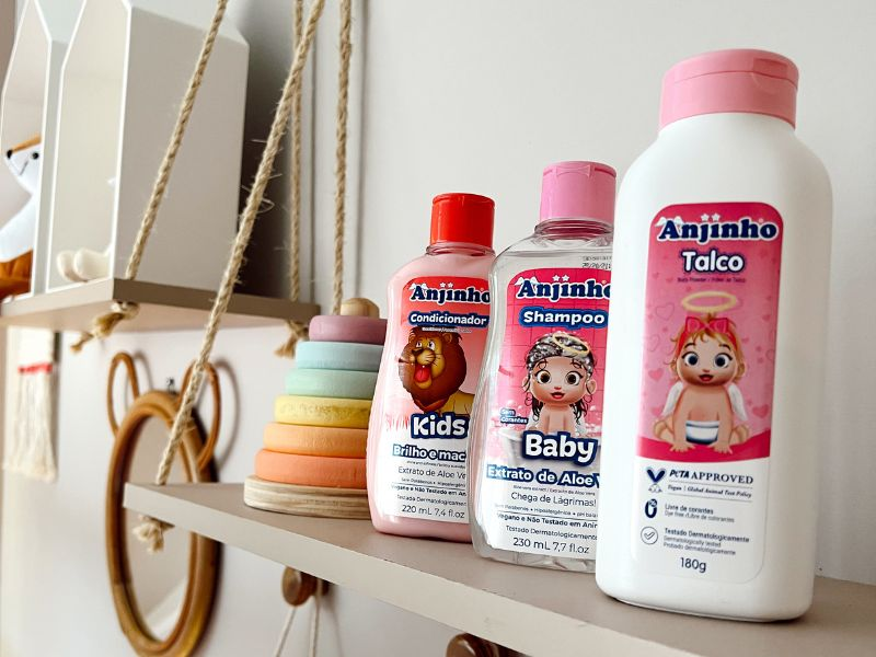Já a linha Anjinho Kids foi pensada para crianças maiores, disponibilizando opções específicas para diferentes tipos de cabelo. A linha oferece condicionadores para brilho e maciez, finos e lisos, além de uma versão especial para cacheados, todas com fórmulas hipoalergênicas que tornam a hora do banho mais segura e divertida.